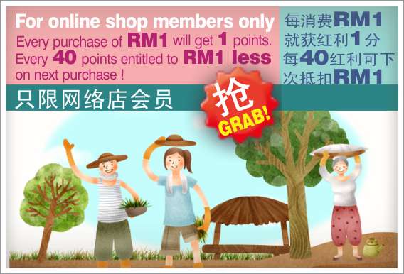 Every purchase of RM1 will get 1 points. Every 40 points entitled to RM1 less on next purchase !